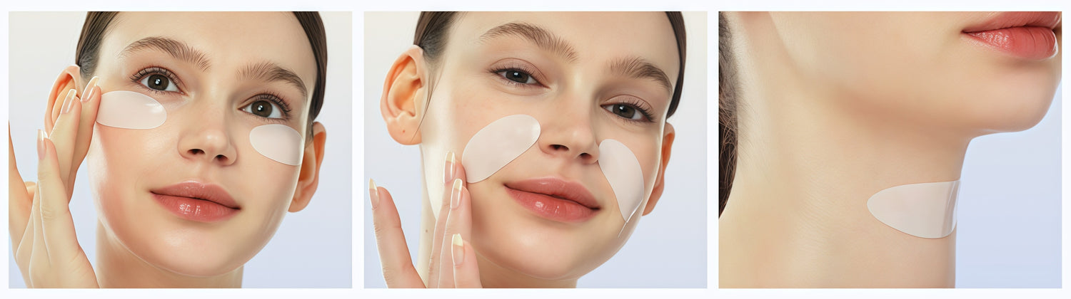 Apply them to the sides of your nose, under the eyes, neck, or